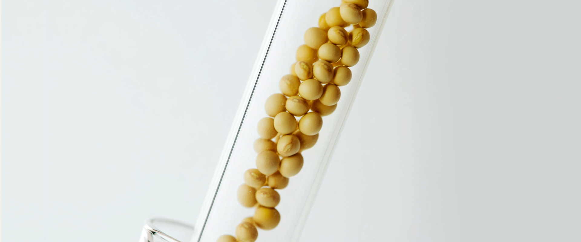 大豆异黄酮是从黄豆中提取的一类天然植物雌激素(Phytoestrogens),其结构与人体雌激素中的雌二醇(E2)相似,可与雌激素受体(主要是 ER-β)结合,从而发挥类雌激素样作用或抗雌激素作用,具体取决于体内激素水平的高低。当体内雌激素水平偏低(如更年期女性),大豆异黄酮可起到轻度替代作用,缓解因激素缺乏引起的症状。而在雌激素偏高的状态下,它们又可竞争性地阻断雌激素受体,降低体内整体雌激素活性,表现出温和的调节作用。此外,大豆异黄酮还具备抗氧化、抗炎、改善脂质代谢等功能,能够通过激活细胞核内的转录因子(如PPARs),调节血脂、保护血管。